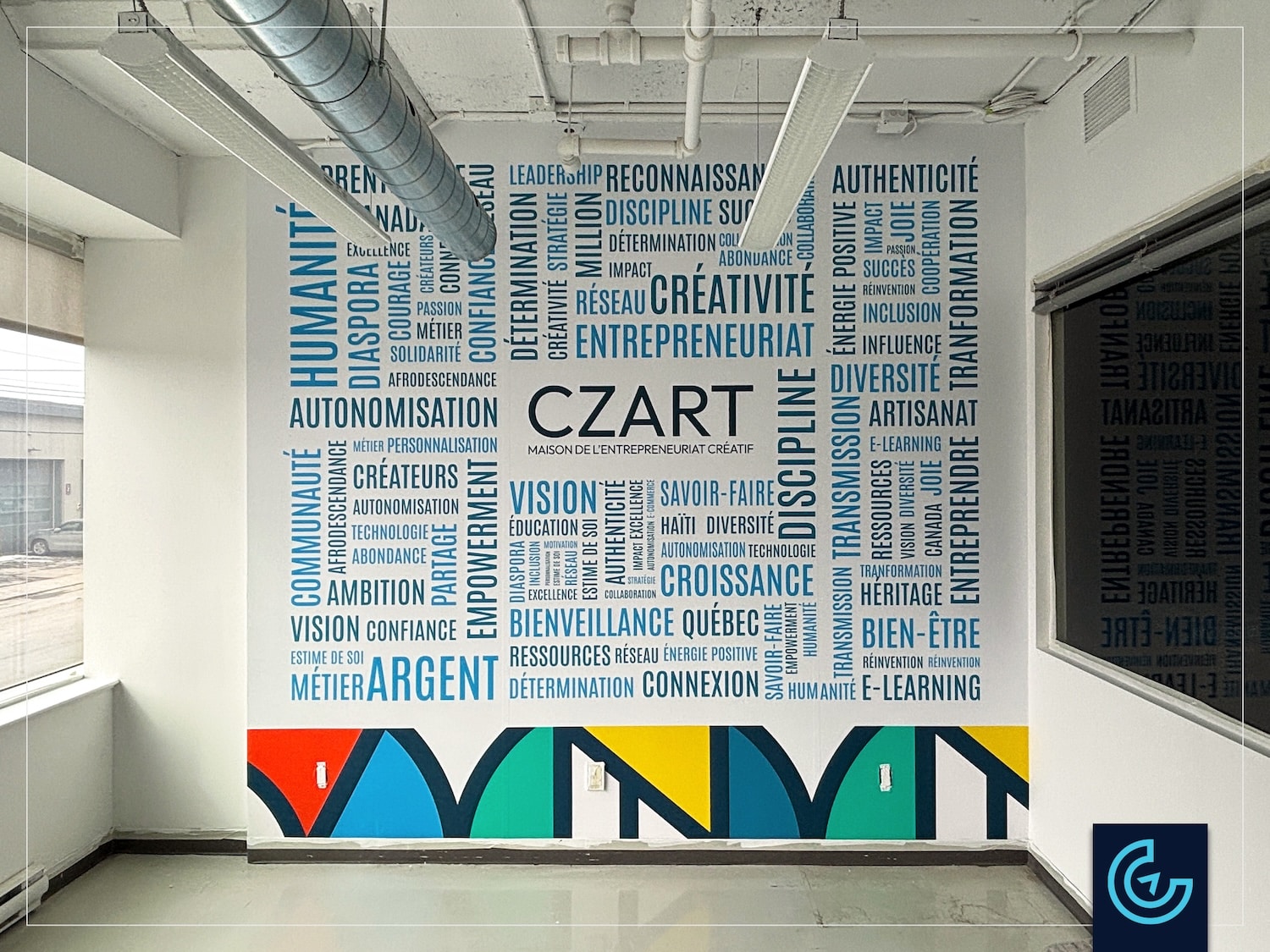 Office wall graphic printed and installed for the art entrepreneur school CZart Academy.
