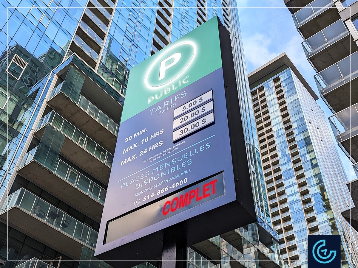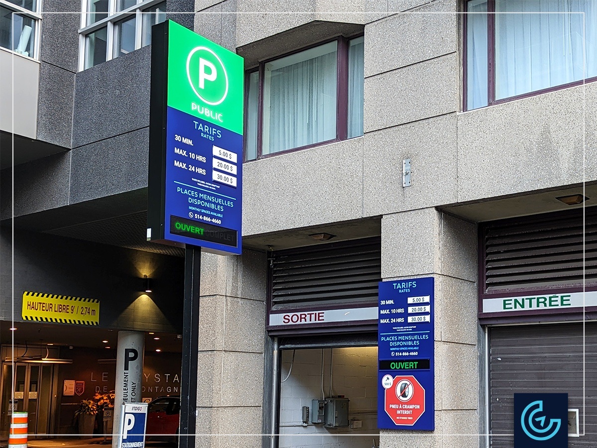 Accueil » Portfolios » Directional signs » Backlit parking sign upgrade: Novotel Montreal