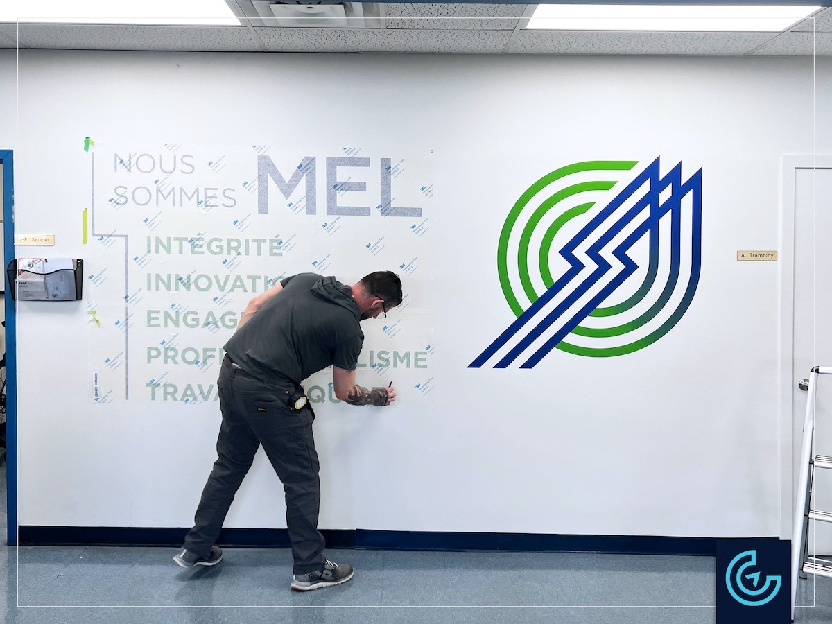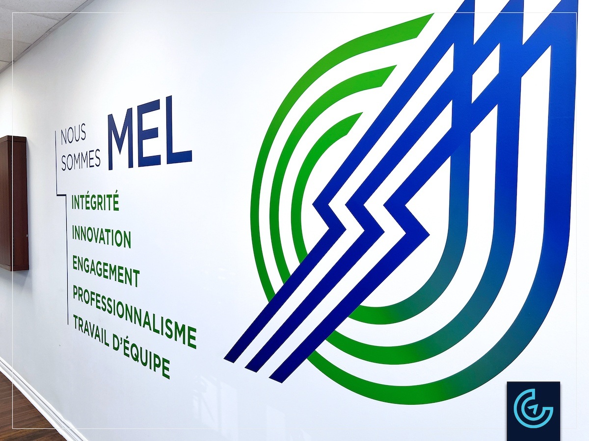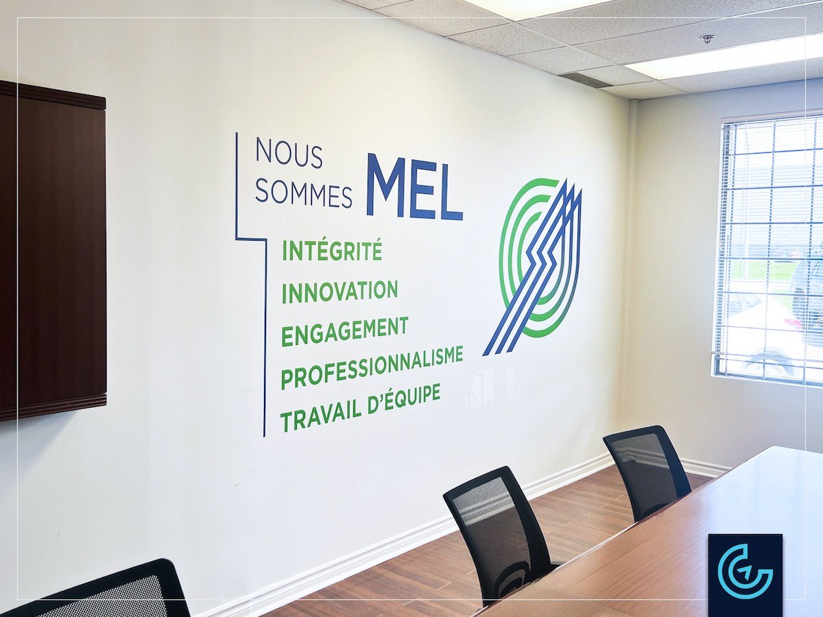Accueil » Portfolios » Wall graphics » Branding corprate values wall graphics for office: Moteurs Électriques Laval