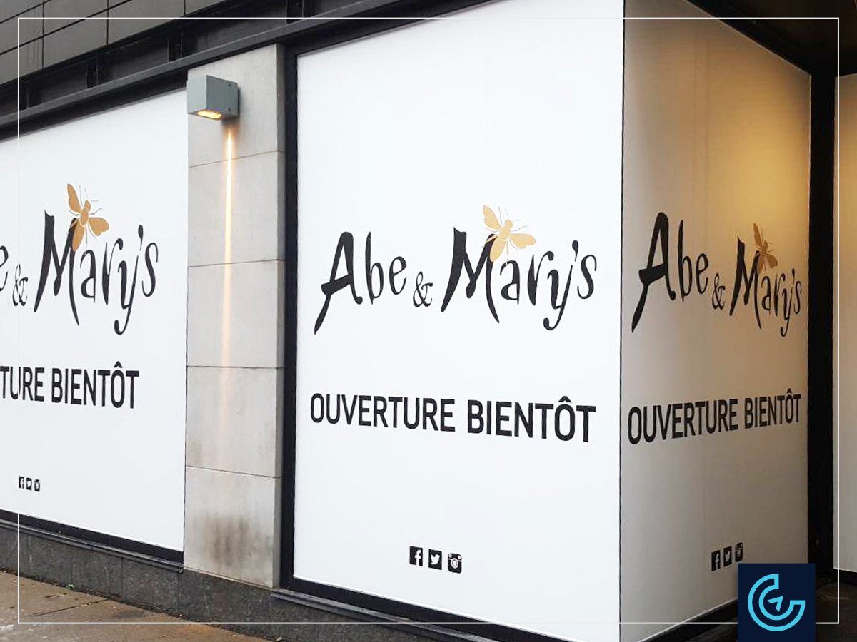 Accueil » Portfolios » Hoarding wrap » Construction hoarding window graphics: Abe & Mary’s