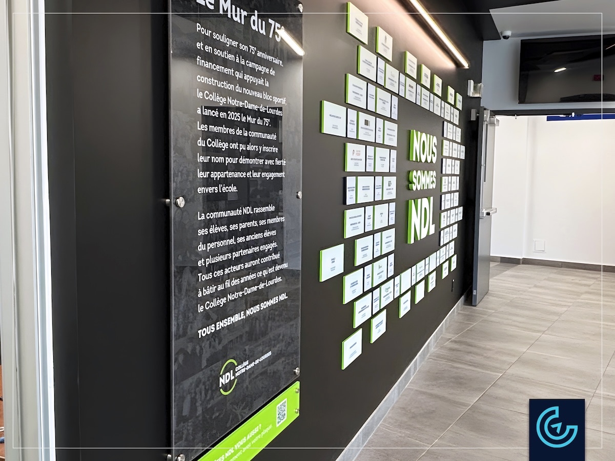 Accueil » Portfolios » Recognition wall » Donors wall to celebrate 75th anniversary of a college: Collège Notre-Dame-de-Lourdes