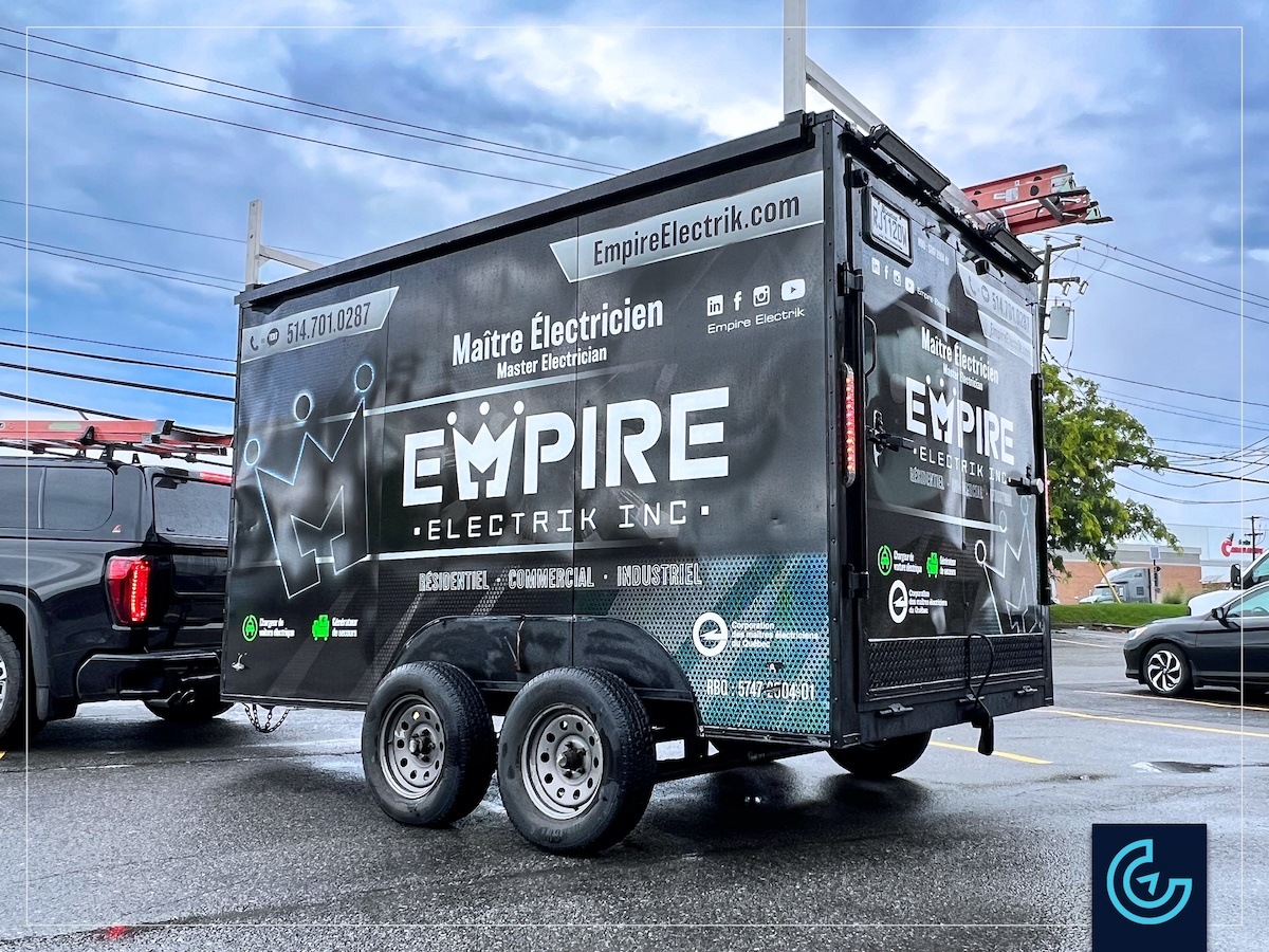 Accueil » Portfolios » Trailer » Full trailer wrap for electrician: Empire Electrik