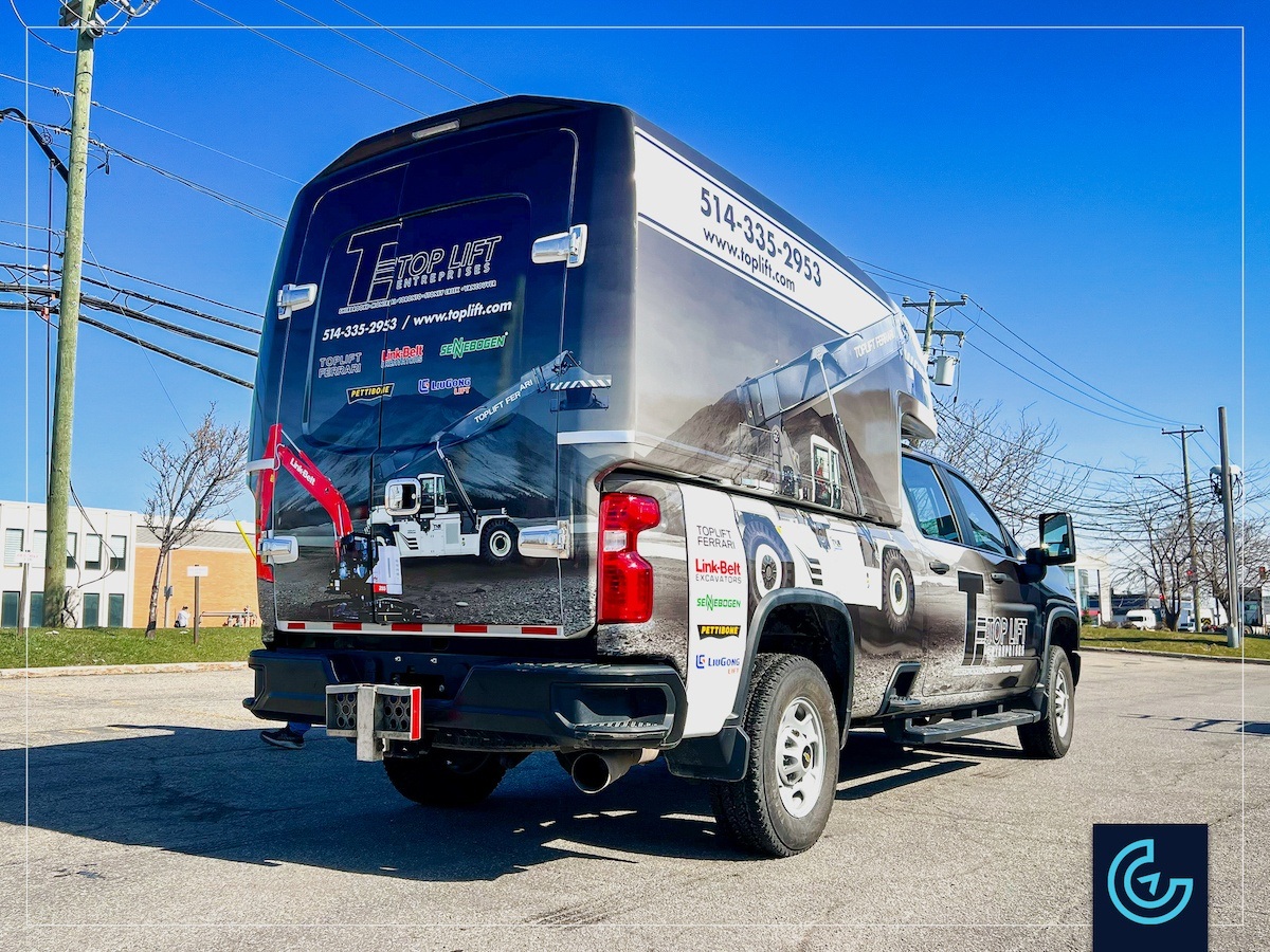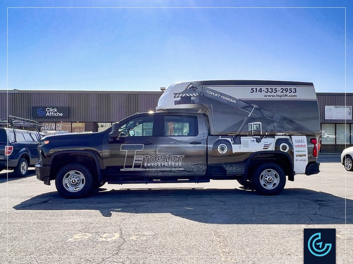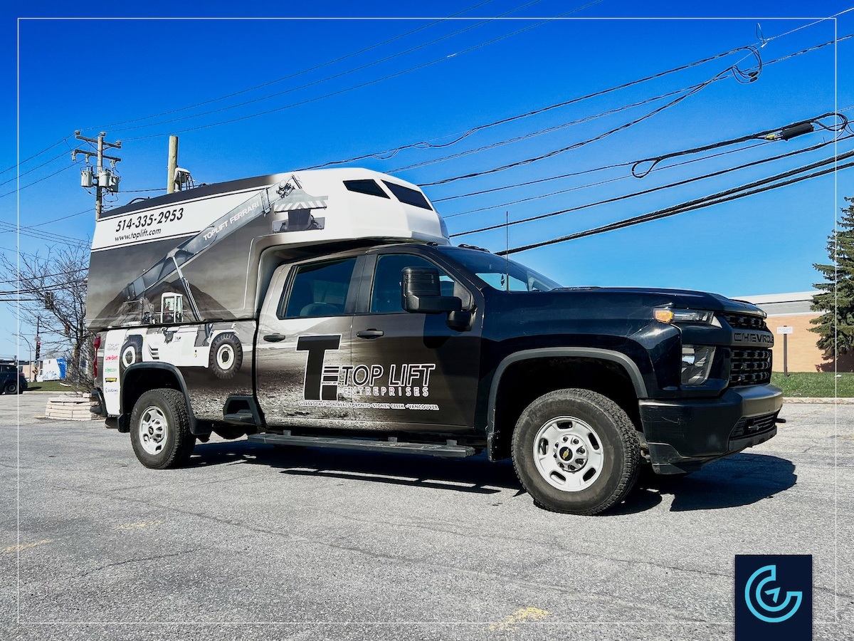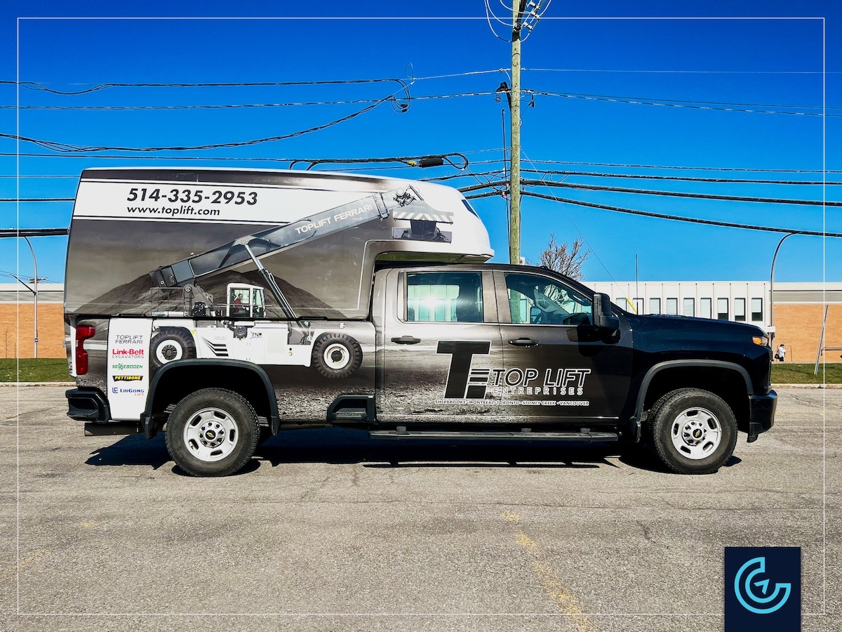 Accueil » Portfolios » Pick-up truck » Heavy industrial equipments provider’s pick-up truck with toolbox complete wrap: Top Lift
