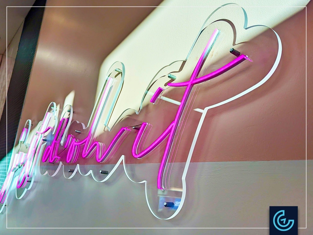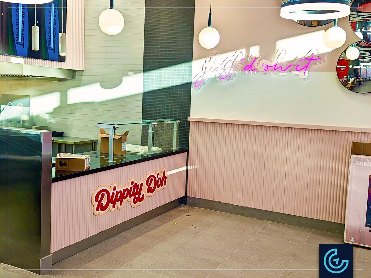 Accueil » Portfolios » Illuminated signs » Interior decoration branding signage: Dippity D’oh (Forum Montreal)
