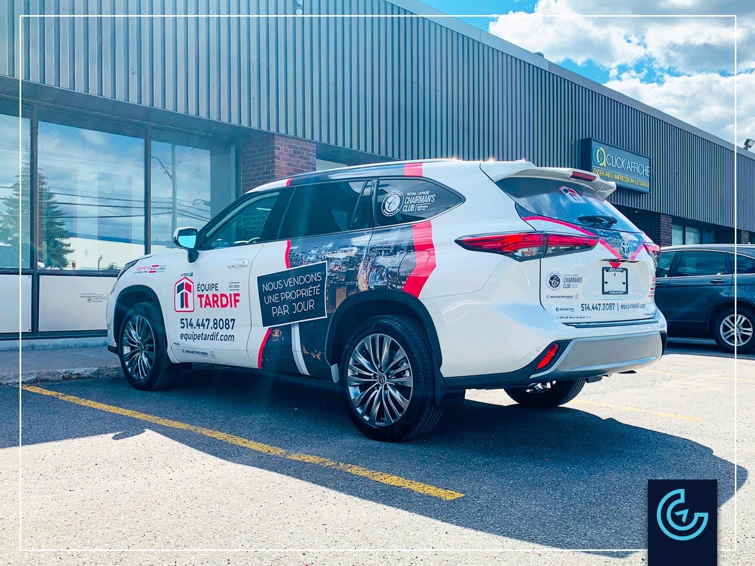 Accueil » Portfolios » Vehicle lettering » Partial vehicle wrap and lettering on the SUV Toyota: Équipe Tardif