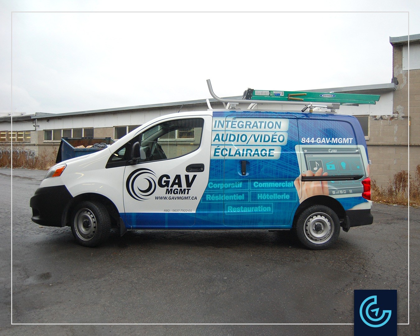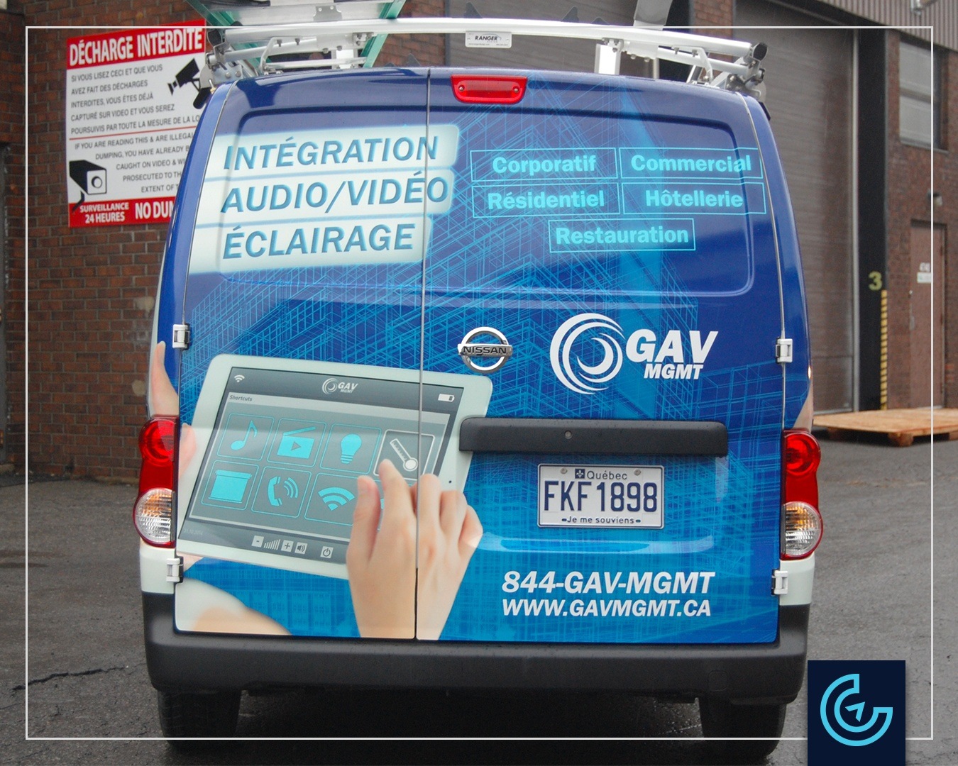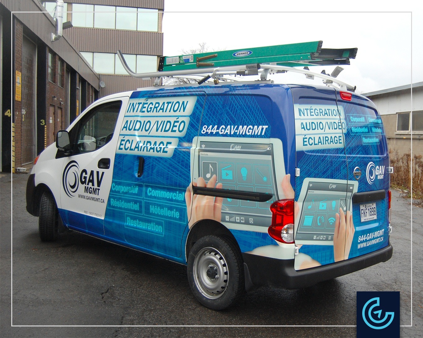 Accueil » Portfolios » Van/Minivan » Partial vehicle wrap on a minivan Nissan: GAV MGMT