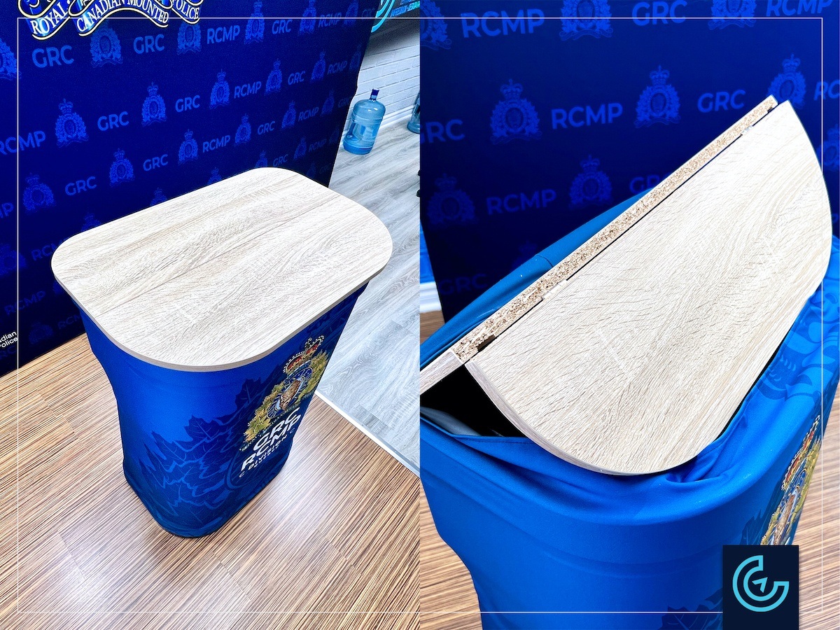 Accueil » Portfolios » Banner printing » Portable pop-up trade show booth in dye-sublimated fabric: Royal Canadian Mounted Police