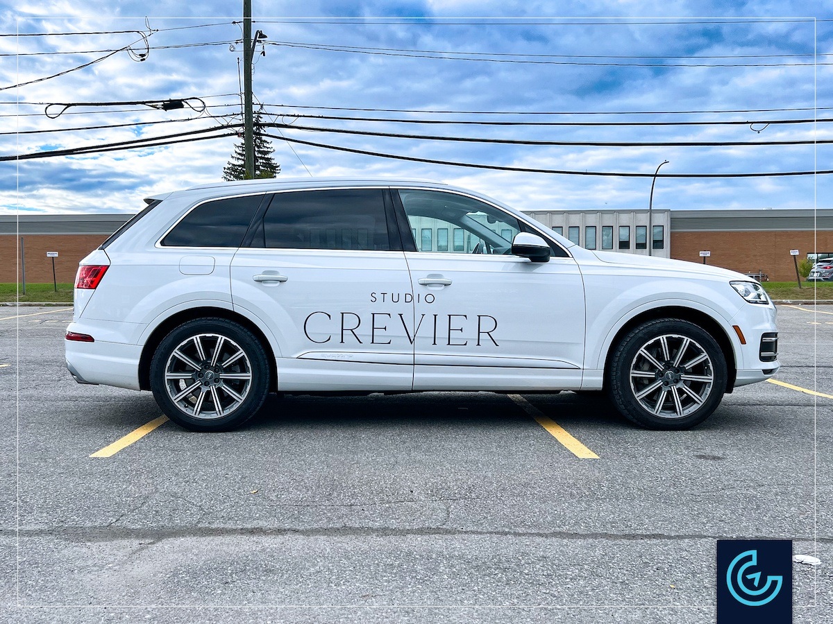 Accueil » Portfolios » Sedan/SUV » Simple vehicle lettering for interior design service: Studio Crevier