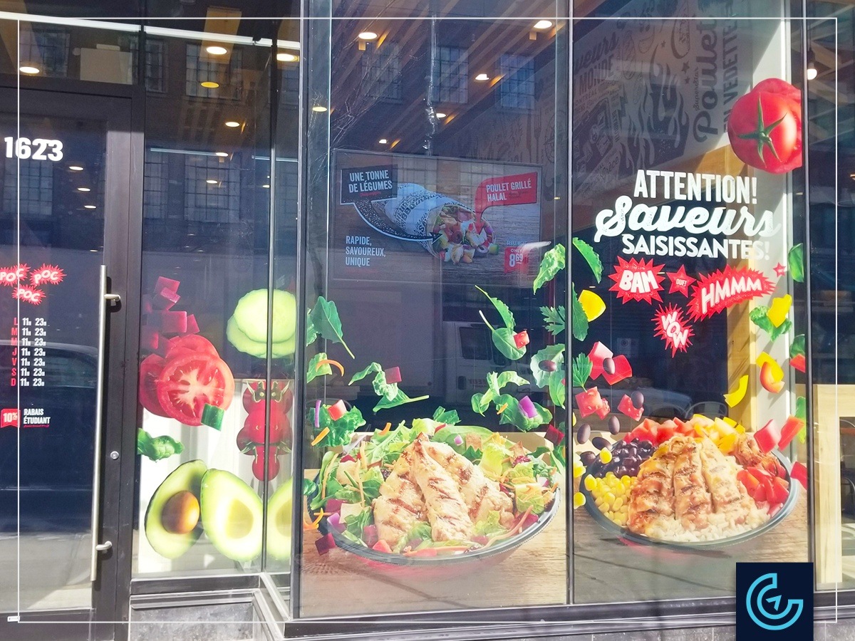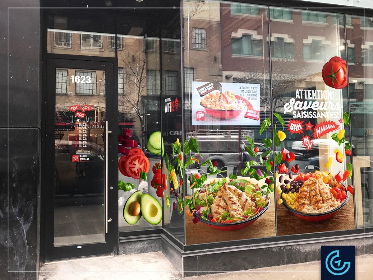 Accueil » Portfolios » Large format printing » Storefront restaurant window graphics: Poulet Rouge (Sainte-Catherine)