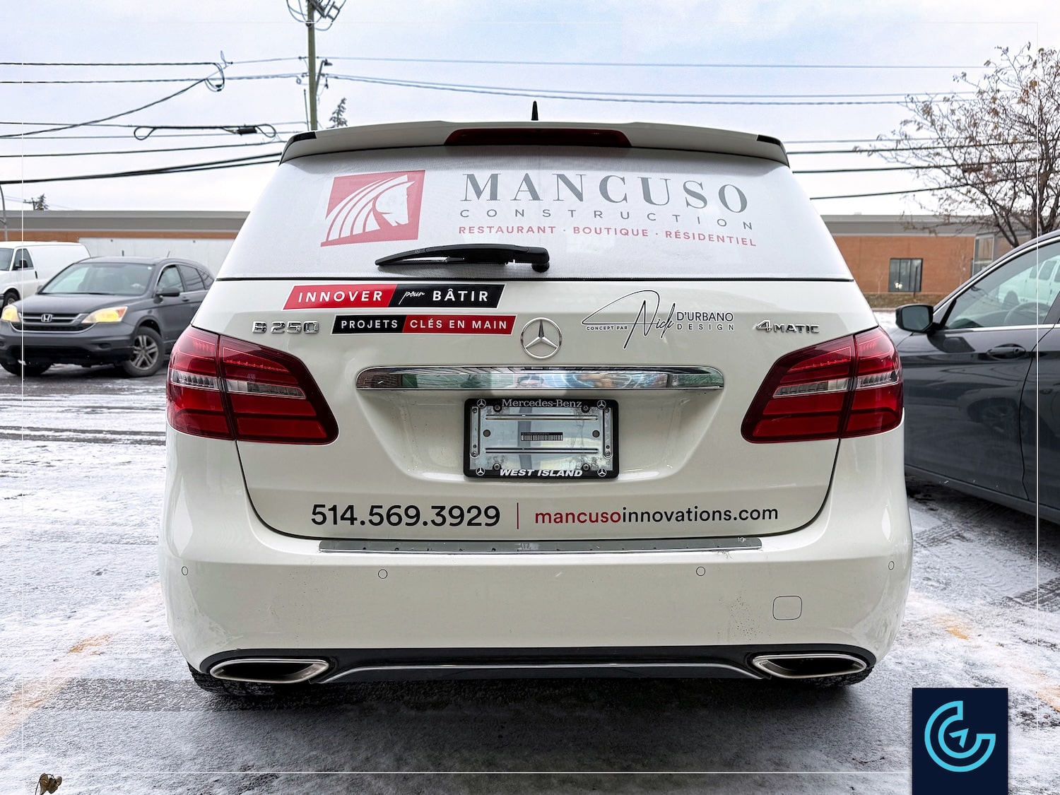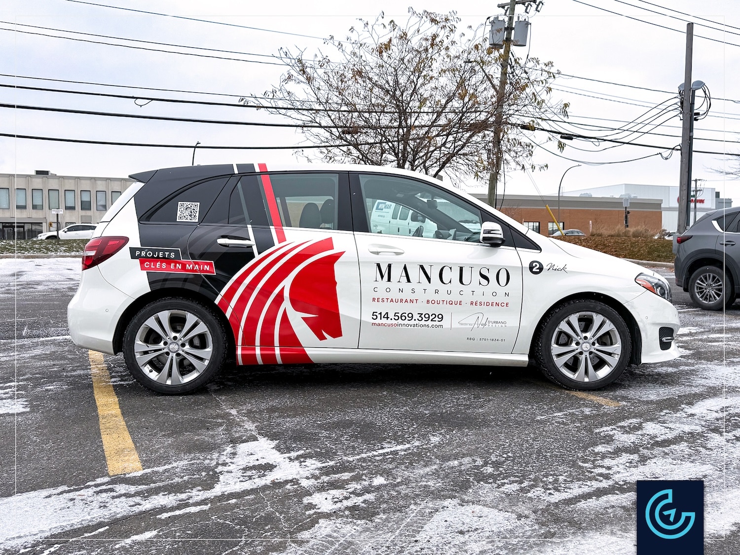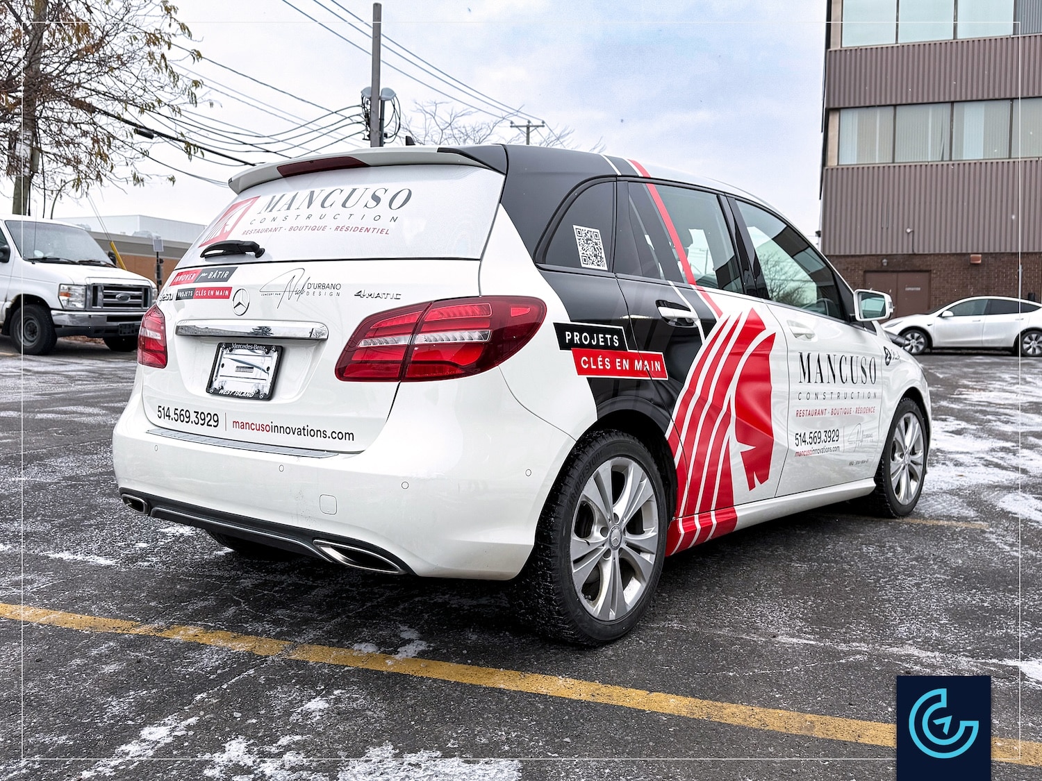 Accueil » Portfolios » Voiture/VUS » Habillage partiel et lettrage d’une voiture sous-compact pour un entrepreneur général construction: Innovations Mancuso