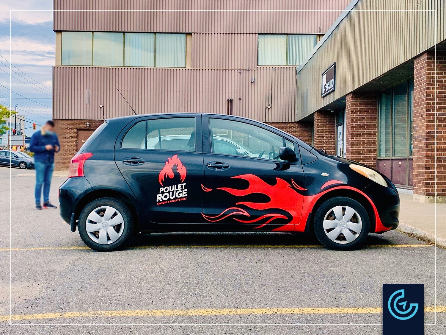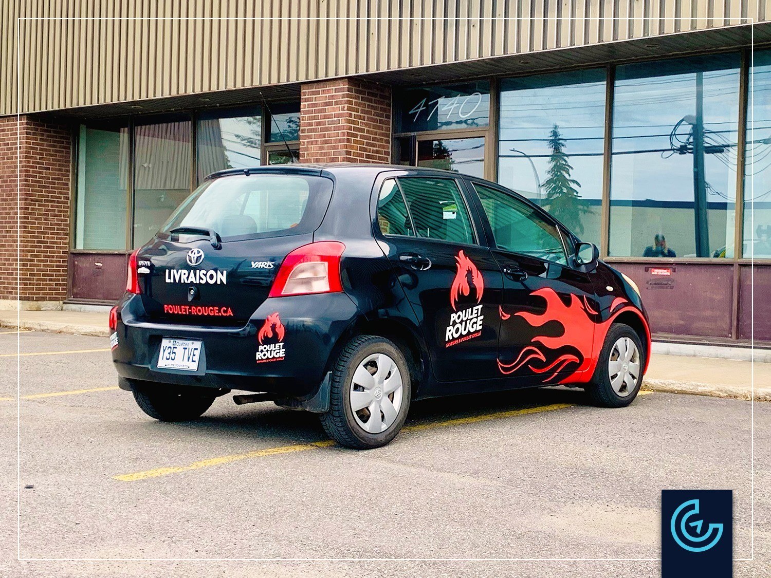 Accueil » Portfolios » Lettrage de véhicule » Lettrage de véhicule pour le service de livraison pour le restaurant Poulet Rouge