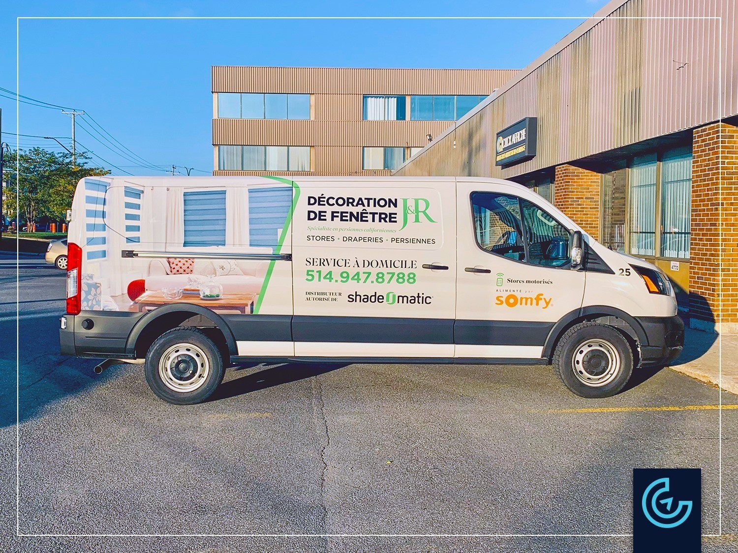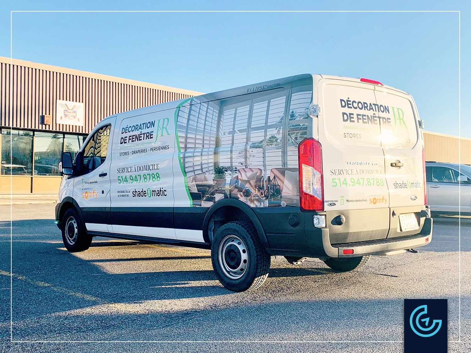 Accueil » Portfolios » Lettrage de véhicule » Wrap partiel et lettrage de véhicule sur un van Ford Transit: Décoration de Fenêtre J&R