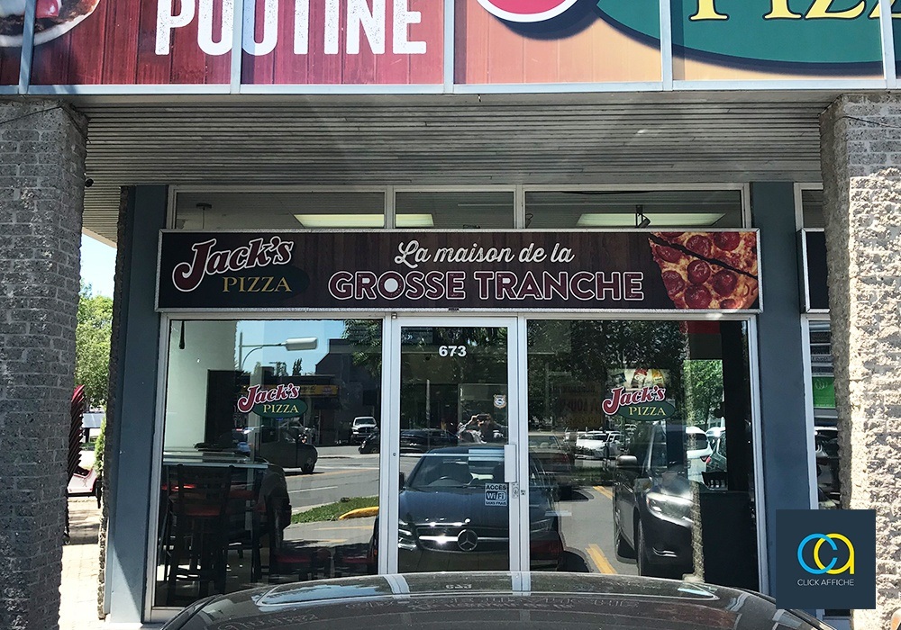 Conception, impression et installation des enseignes rétro-éclairées pour Restaurant Jack’s Pizza